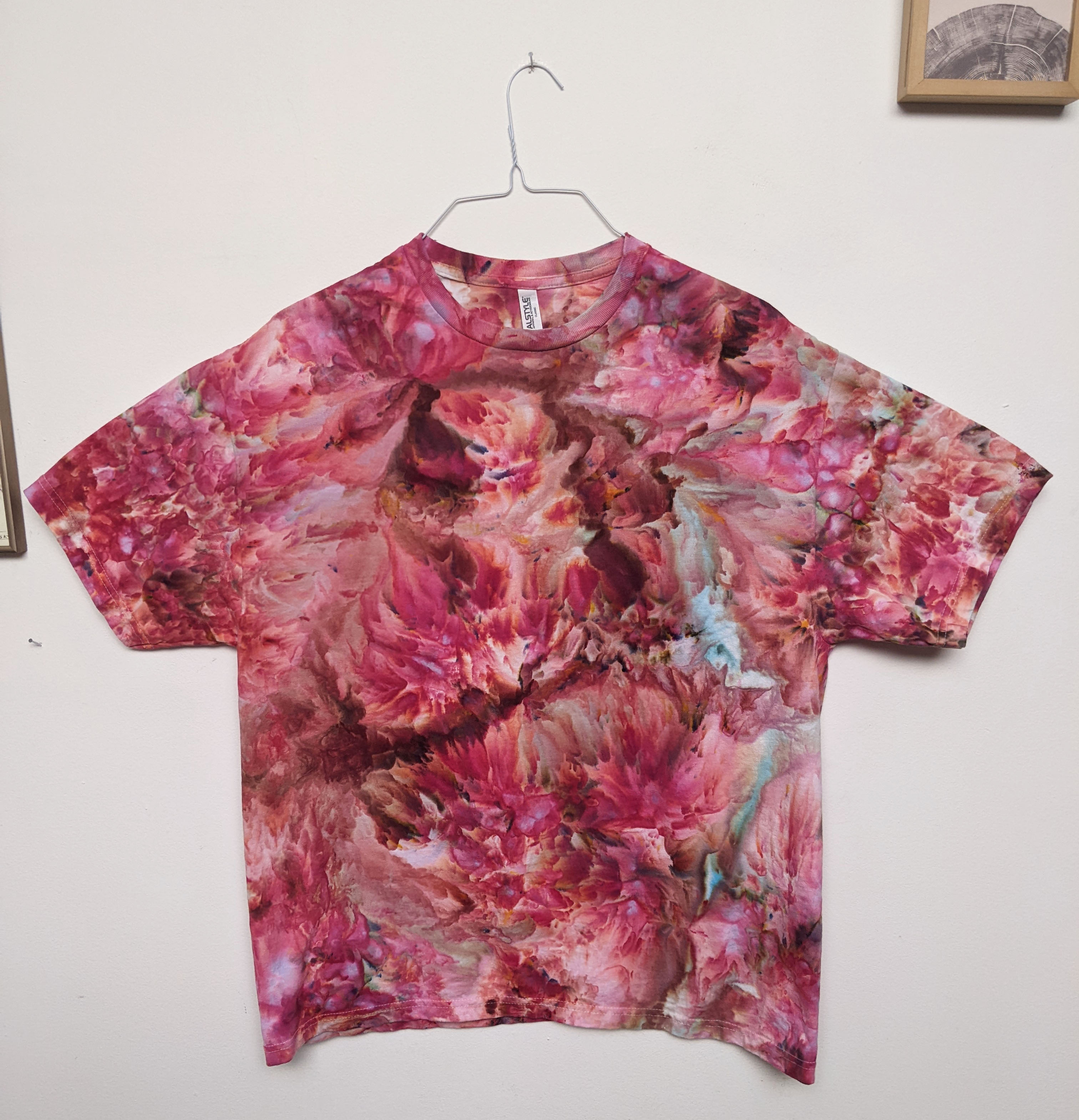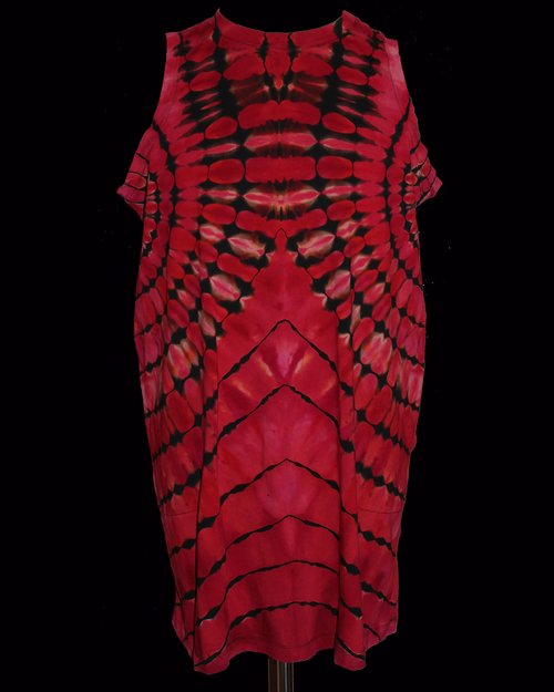 A color removal process was done on the dress and then ice dyed in this really pretty red/pinkish color palette.